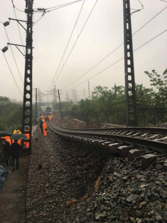 2018年4月12日凌晨,京廣普速鐵路1218KM+900M至1219KM+100M處路基垮塌。市國土資源規(guī)劃局領(lǐng)導(dǎo)接到應(yīng)急辦通知后,立即趕赴現(xiàn)場開展應(yīng)急處置工作,并將信息發(fā)布至“局地質(zhì)災(zāi)害隱患點工作群”內(nèi)。按照公司領(lǐng)導(dǎo)指示,地質(zhì)環(huán)境中心迅速行動,積極聯(lián)系市局領(lǐng)導(dǎo)確定事故位置,整理相關(guān)地質(zhì)資料,攜帶專業(yè)設(shè)備第一時間趕赴現(xiàn)場,配合開展事故應(yīng)急調(diào)查工作。