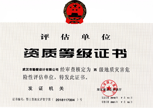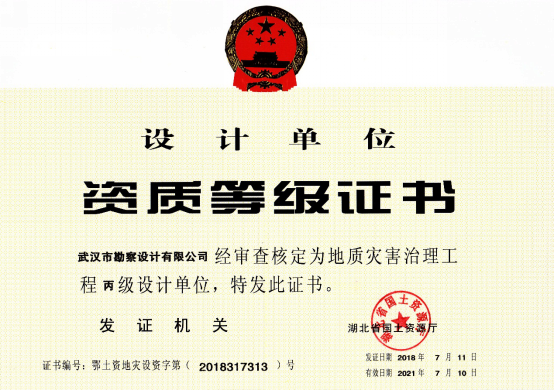 近日,湖北省國土資源廳發(fā)布了關(guān)于2018年度地質(zhì)災(zāi)害危險(xiǎn)性評估和治理工程資質(zhì)(新立、升級)審批結(jié)果的公告,公司地質(zhì)災(zāi)害危險(xiǎn)性評估和地質(zhì)災(zāi)害治理工程勘查、設(shè)計(jì)、施工資質(zhì)申請一次性順利通過國土資源部審核,并成功取得了資質(zhì)證書。