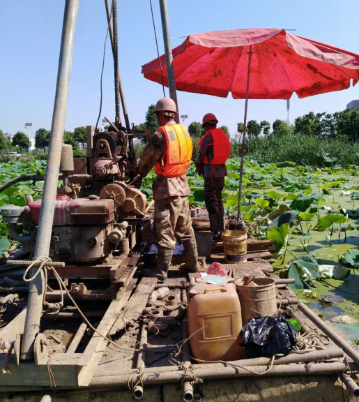 本工程任務重,勘探工作量大,開工前項目負責人對現場鉆探人員進行了技術交底、環(huán)安教育及思想工作?辈炱陂g正值持續(xù)高溫天氣,給外業(yè)工作帶來了巨大挑戰(zhàn),但工作過程中項目成員及鉆探人員吃苦耐勞、堅守崗位,加班加點,保證外業(yè)進度的同時,也不懈怠安全生產及質量把控,使得勘察工作有條不紊的進行。