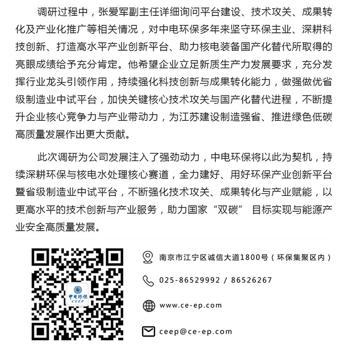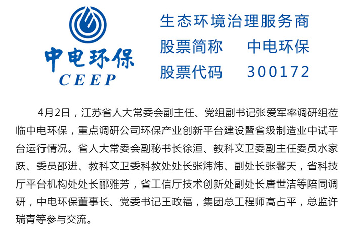 中電環(huán)保股份有限公司是南京市首家環(huán)保上市公司(股票簡(jiǎn)稱:中電環(huán)保,股票代碼:300172),南京環(huán)保產(chǎn)業(yè)協(xié)會(huì)會(huì)長(zhǎng)單位,國(guó)家級(jí)聯(lián)盟理事長(zhǎng)單位,是生態(tài)環(huán)境治理服務(wù)商,主營(yíng)(3+1):水務(wù)、固危廢、煙氣治理及產(chǎn)業(yè)創(chuàng)新平臺(tái),包括:工業(yè)水處理、污水處理及水環(huán)境綜合治理;固危廢土壤、污泥餐廚垃圾處理;煙氣及VOCS治理;智慧環(huán)保;高端裝備等。