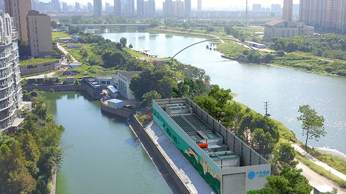 治理措施:采用“源頭截污、就地凈化、集散結(jié)合、清水回補”的思路,采用自主研發(fā)的 “懸浮床” 及“三相增強”生物膜反應(yīng)器等核心技術(shù),運用污水模塊化裝置(CBS),在河道、泵站前池、污水匯集區(qū)域就近設(shè)置,為城市內(nèi)河、流域斷面水質(zhì)達標(biāo)提供保障。